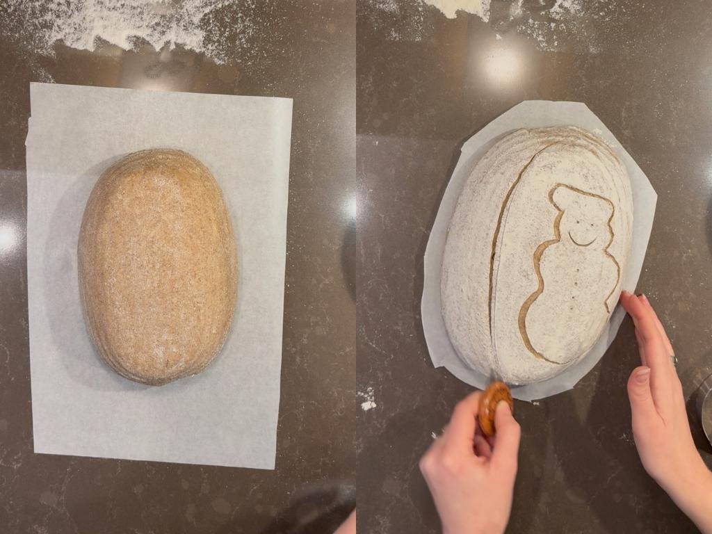 - 19Je kunt het deeg nu insnijden met een deegmesje. Zorg voor minimaal 1 lange sneden over de gehele lengte van het brood, dit geeft jouw zuurdesembrood de kans om mooi te rijzen in de oven. Wil je dat jouw snedes goed zichtbaar zijn als het brood is afgebakken, smeer je deeg dan nog lichtjes in met bloem VOORDAT je het gaat insnijden. Jouw snedes zullen dan bruin worden en de rest van het brood zal wat lichter blijven door het bloem.